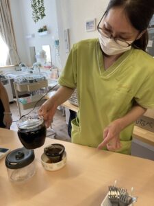 本日ユニットでカフェ勤務の経験のある職員さんがご利用者様のために美味しいコーヒーを入れて下さいました。😆