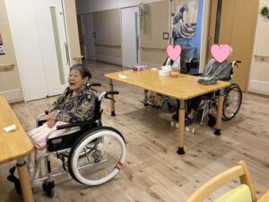 こちらのユニットではモニターに合わせて皆様、体操をされています😌