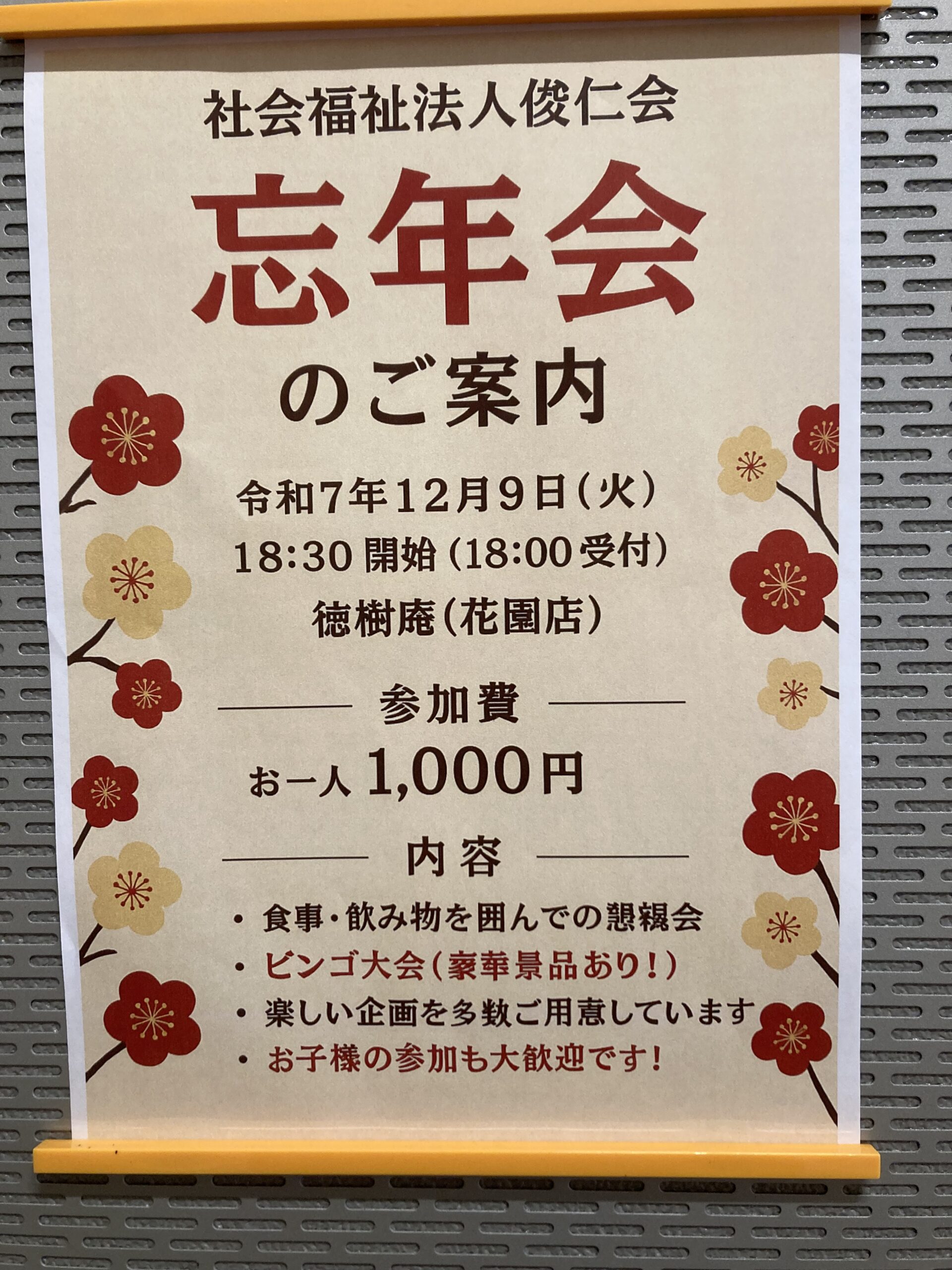 昨日、社会福祉法人俊仁会の忘年会が開催されました😌
